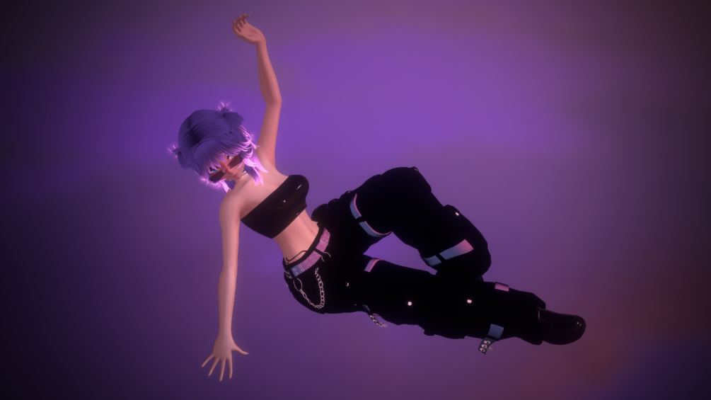 Body by Eliza, Head by Godfall, Choker/Goth set by Vinuzhka, Garters by Calbia, Glasses by Snitchieio, Leg warmers by Ezra, Tail by Ourse, Hair 1 by Gwennovere, Hair 2 by Skulli, Bikini by Cinnamon, Boots by Ultrahighgloss, Cargo by Untitledfbx, Panties by Amaya, Shorts/Sweater by Boo, Skirt by Zoxl, Meta Plushie by 悪魔 A K U M A, Star prefab by DolphinSecret, SpS by Wholesome, GoGoLoco by Franada